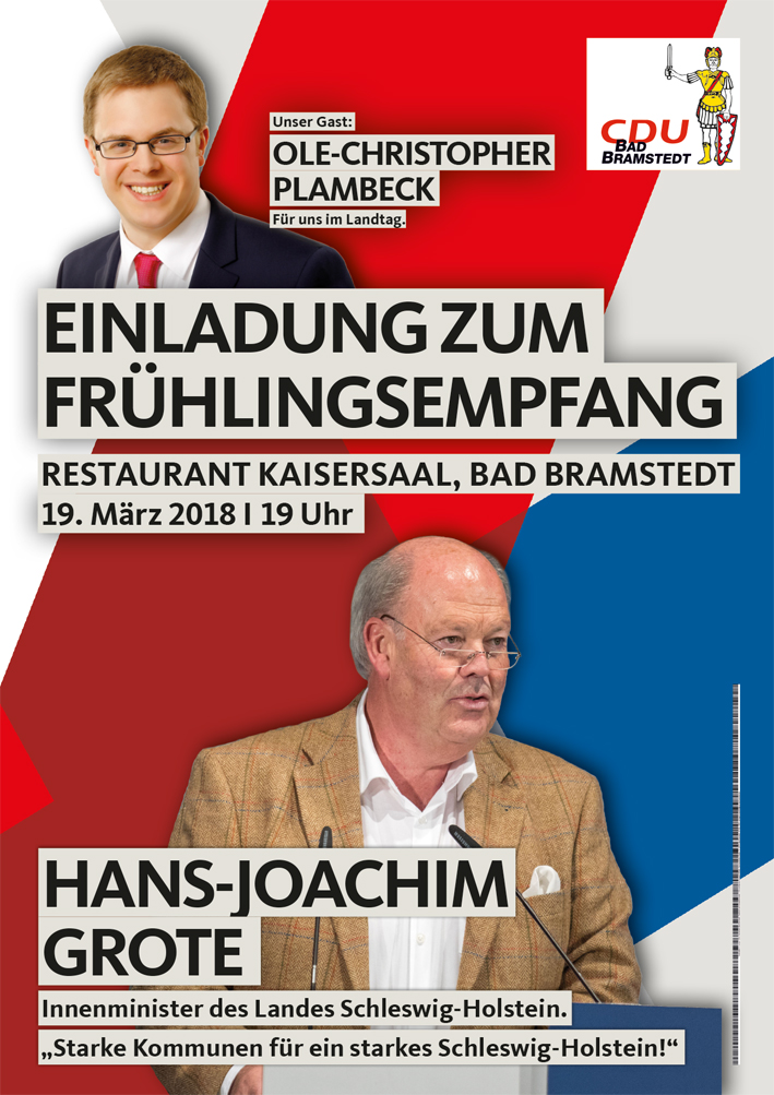 Bad Bramstedt – Der CDU Bad Bramstedt lädt am Montag, den 19. März 2018 um 19 Uhr alle Bürgerinnen und Bürger zum Frühlingsempfang in den Kaisersaal, Bleeck 26 in Bad Bramstedt ein.