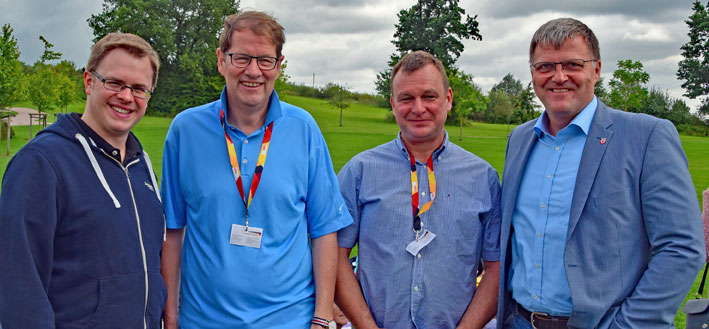 (vlnr.) Ole-Christopher Plambeck MdL, der Gero Storjohann MdB, Organisator Waldemar Bianga und Kaltenkirchens Bürgermeister Hanno Krause.