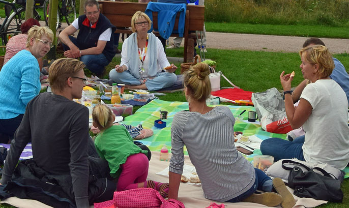 Gero Storjohann mit Brötchen bei Picknick und Politik in Henstedt-Ulzburg